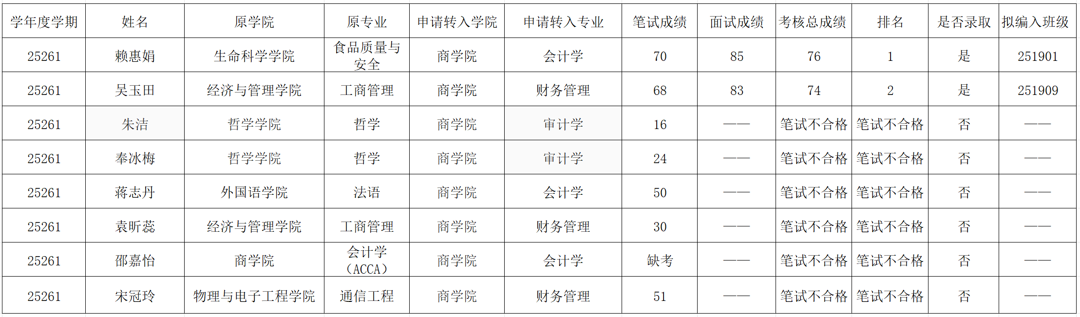 >>商学院2025-2026学年第一学期开学专业调整考核成绩、拟录取情况公示