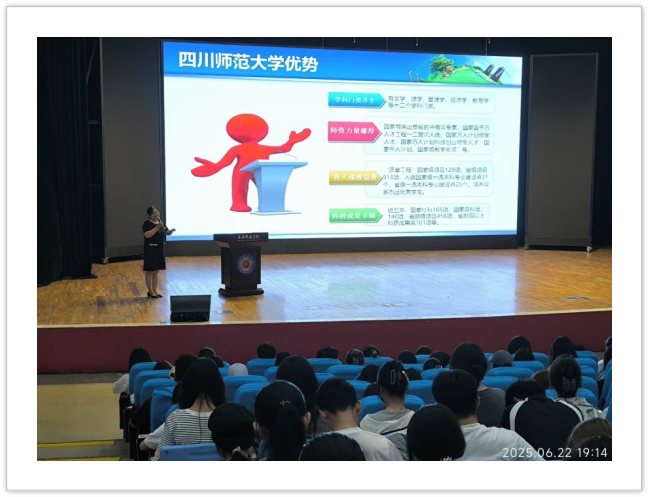 2025年6月15日19:00,四川师范大学商学院企业管理硕士点招生宣讲会在成都锦城学院锦城大礼堂隆重举行。宣讲会由成都锦城学院财务与会计学院党委书记兼副院长姚东主持,吸引了大三学子踊跃参加。