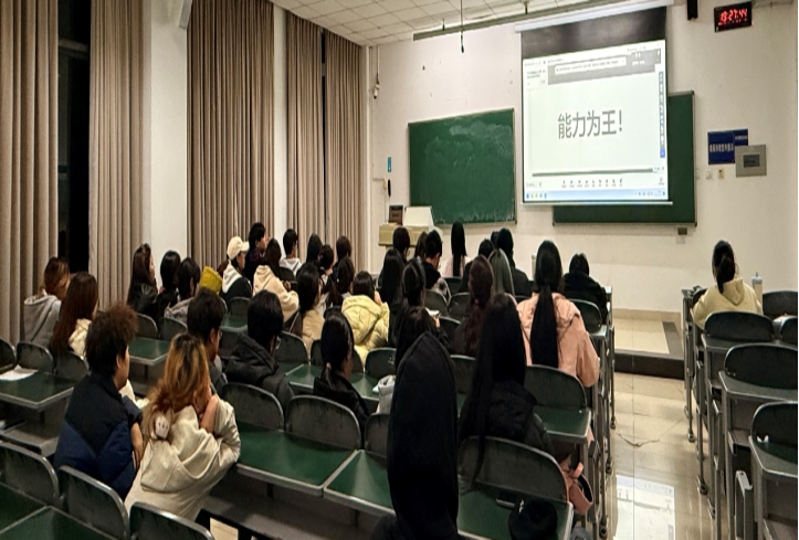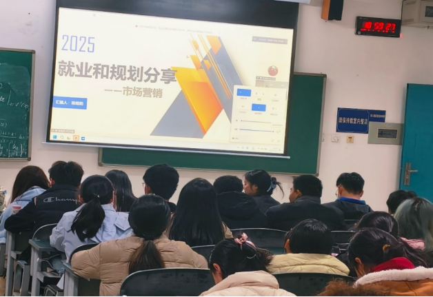 陈皓阳还就当前就业形势展开分析。他指出,面对考公考研热度上升、传统行业竞争加剧等现实,社会更需要复合型人才。他鼓励同学们拓宽视野,打破对市场营销就业方向的固有认知。“个人的发展道路,宽度与长度皆由自身能力决定,未来,企业和社会需要的是复合型人才。”这番话让同学们对未来有了更清醒的认知,也促使大家重新审视自身的成长规划。他举例说道,大学同寝室舍友凭借专业知识成长为大企业经理,跨行发展的同学在字节跳动、TCL等大公司的岗位上发光发热。人事、新媒体、市场调研、采购等都是同学们未来可能去到的岗位。这些鲜活的例子让同学们真切感受到市场营销专业就业的无限可能。