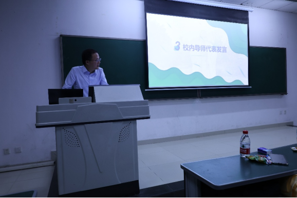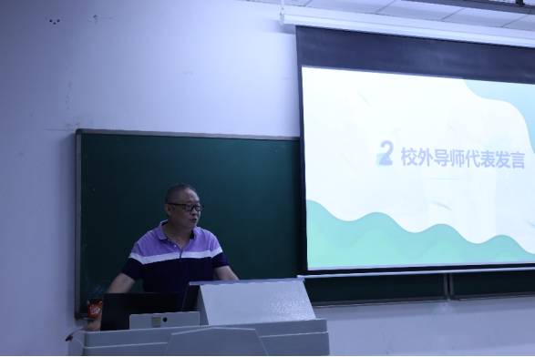 校内导师代表蔡强教授则以“干中学、学中干铺就成长之路”为主题,与同学们分享了学习和实践的内在统一关系。他提出研究生要“知行合一,科学规划,勇于创新,持续互动”,这些建议为同学们的科研之路提供了清晰的行动指引。