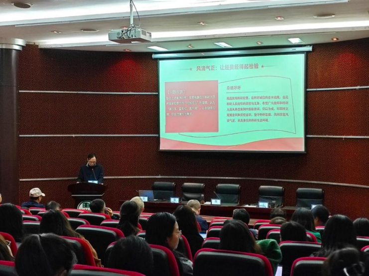 2025年10月23日下午,商学院全体教职工开展了师德师风典型案例警示教育。学院纪委委员汪瑞结合近期高校出现的套用科研经费等典型案例,通过深入学习贯彻全面从严治党要求,强化纪律意识与廉洁自律意识。